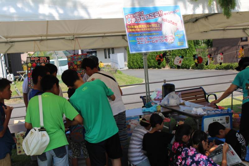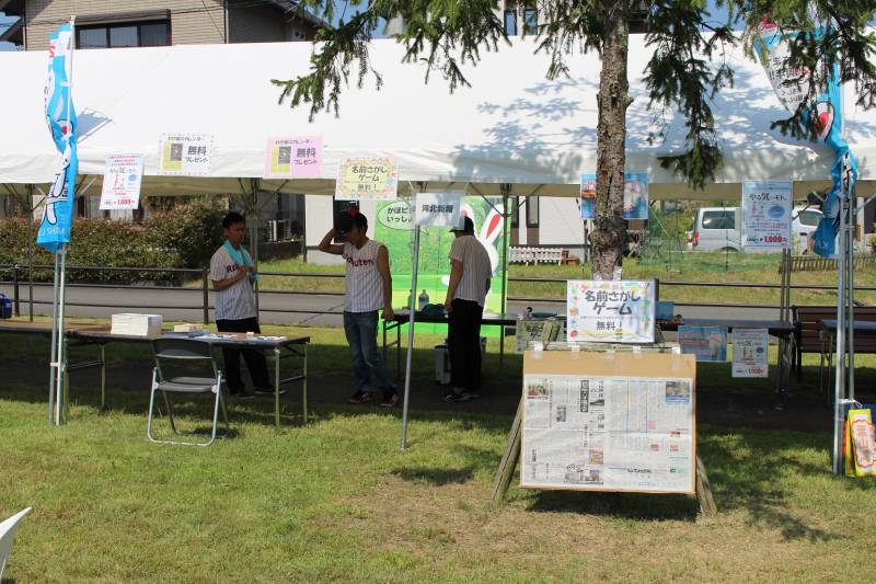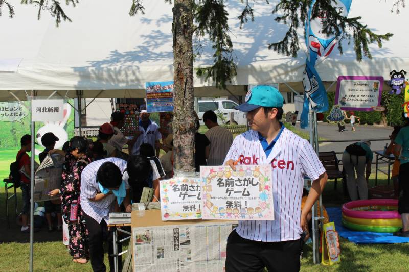 今年の河北新報のブースでは、新聞紙面から自分の名前を探す「名前探しゲーム」を実施しました。普段何気なく読んでいる新聞も、特定の文字を探すことで、脳の活性化に役立つと言います。楽しみながら頭の体操が出来る「名前探しゲーム」には200人を越すお子さんたちがチャレンジしてくれました。見事クリア出来た人には消しゴムくじとスーパーボールくじにチャレンジしてもらいました。先着100名様にはアイスのプレゼントもありました。